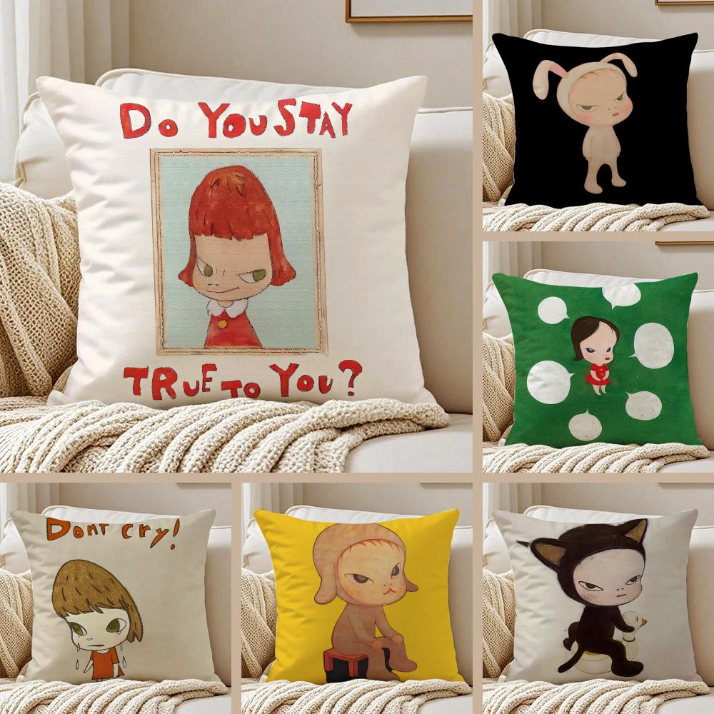 Yoshitomo Nara Pillow Case Silky Elegant Comfort Sofa Bed Invisible Zipper