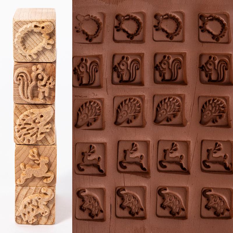 5pcs Wooden Texture Stamp Set for Pottery Cartoon Animal Plant Imprint Molds Clay Carving Tools for Ceramic Art