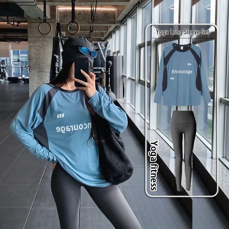 Plus Size Long Sleeve Yoga Set - Loose, Hip-Covering, Quick-Dry for Spring & Autumn