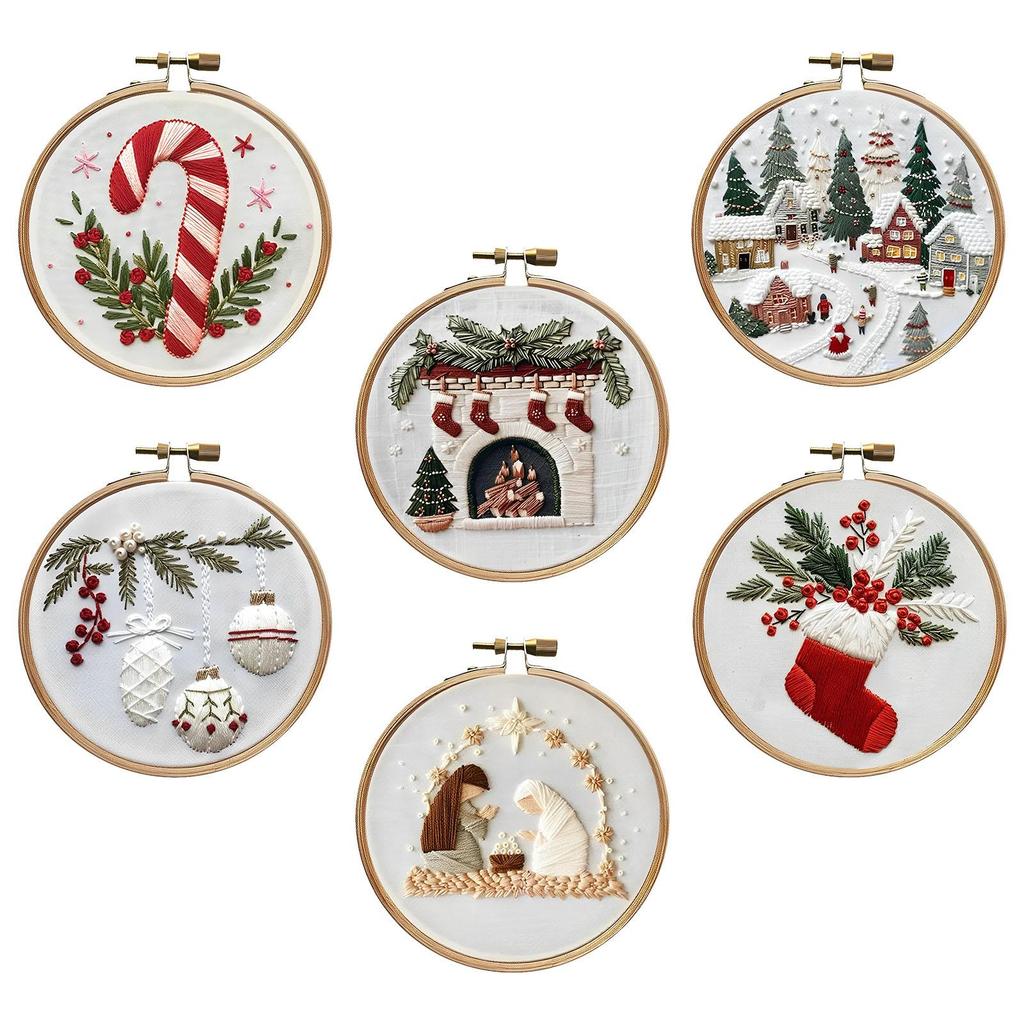 Christmas Embroidery Kit Cotton Hoop Cross Stitch Set Printed Pattern Crafts Package for Holiday Decoration Beginners