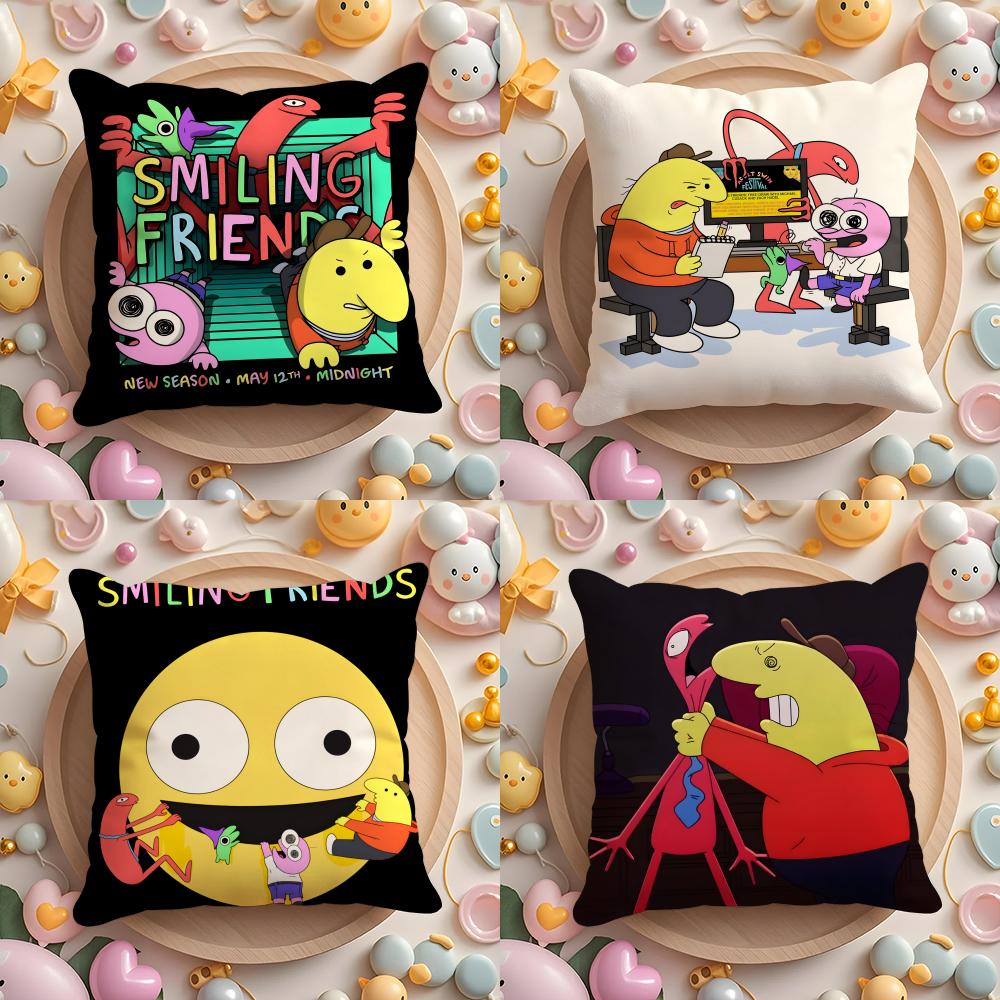 S-Smiling cartoon F-Friends Cushion Cover Home & Car Multi-Scene Pillow Cover - Reversible, Soft & Durable for Daily Use