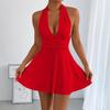 Sexy Mini Šaty Bez Zad Těsně Padnoucí Šaty s Výstřihem do V Krátká Sukně Šněrovací Pásek Dámské Oblečení Módní Trendy Plážové Vestidos