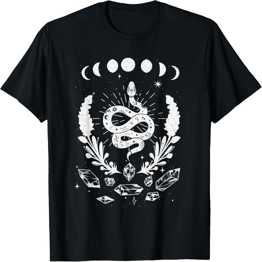 Fáze Měsíce Had Krystaly Gotický Punk Styl Mystický Kouzelnický Tričko