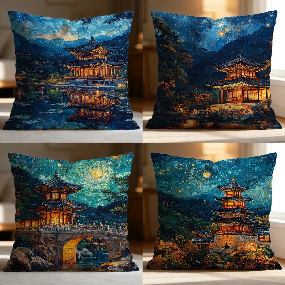 Popular F-FFoguo Temple Cushion Cover Soft Washable Pillow Case Multi-Scene for Couch Bed Travel Office Use