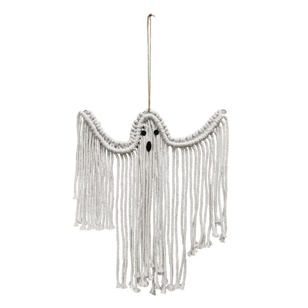 Halloween Handmade Woven White Ghost Tapestry Spooky Holiday Wall Hanging Decoration, Size S