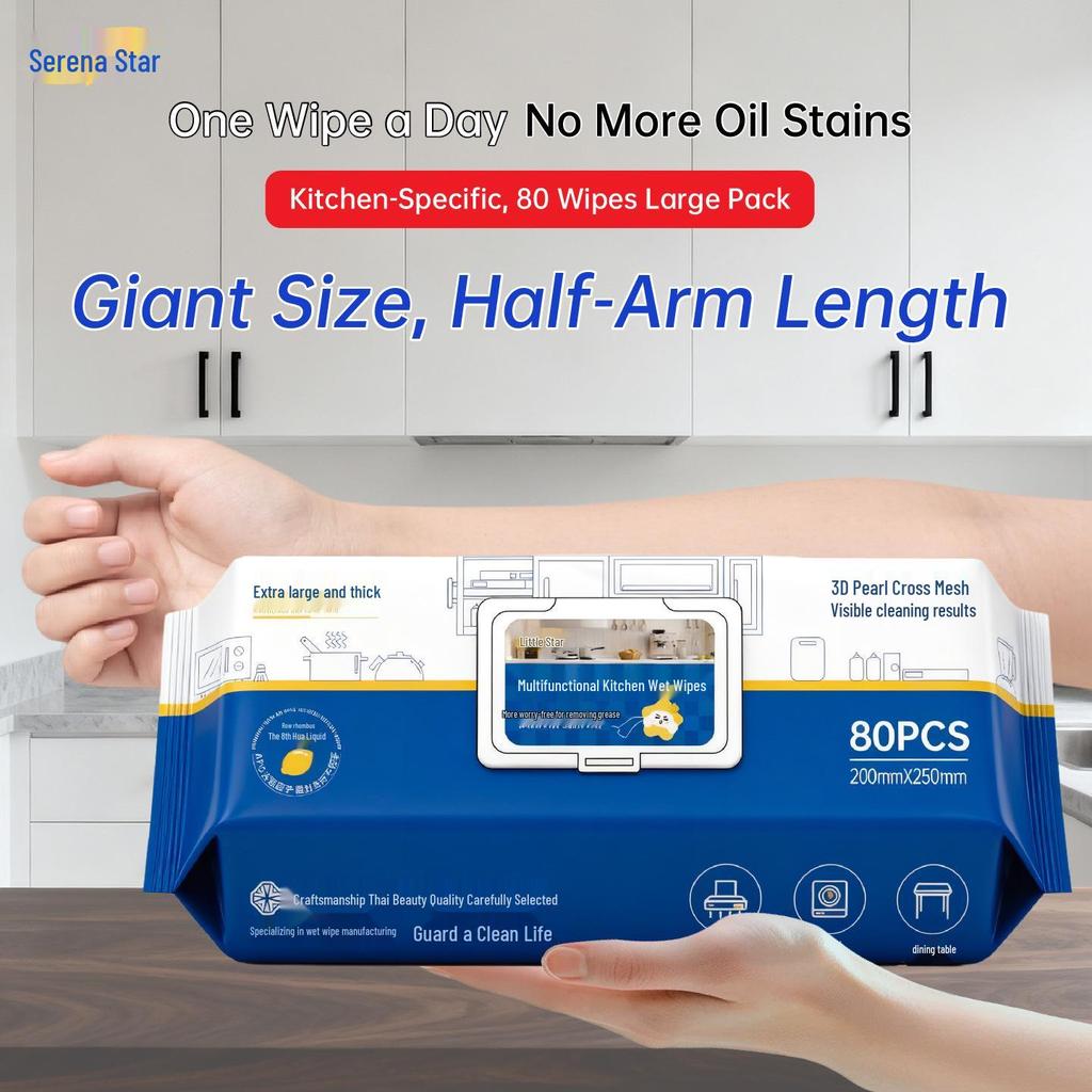 Extra Thick Kitchen Wet Wipes for Oil Stain Removal - Strong Cleaning for Range Hoods