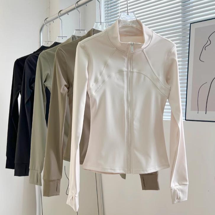 Women's Quick-Dry Yoga Jacket with Zipper, Sun Protection, and Stand Collar for Running and Gym.