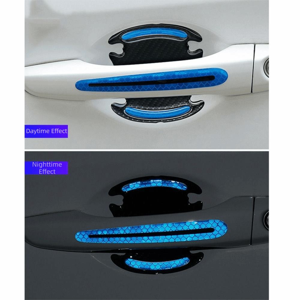 8Pcs/Set Carbon Fiber Car Handle Protector Self-Adhesive Anti-Scratch Car Door Guard Easy To Install Reflective