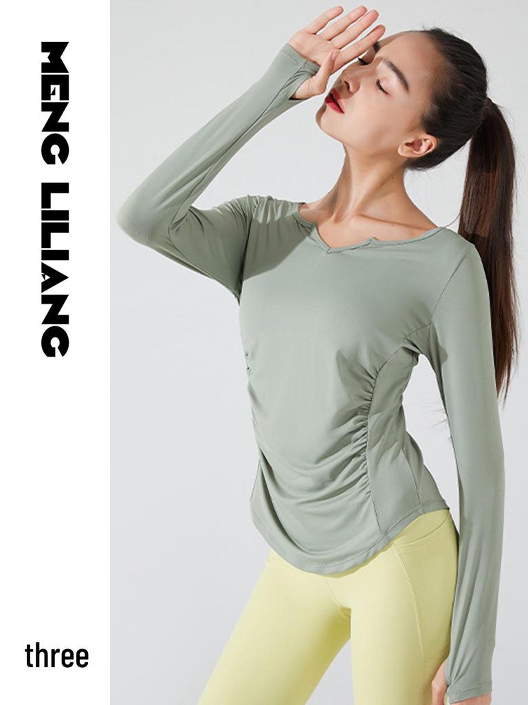 Women's V-neck Long-sleeve Yoga Top - Elegant, Loose, and Breathable for Spring and Autumn Fitness