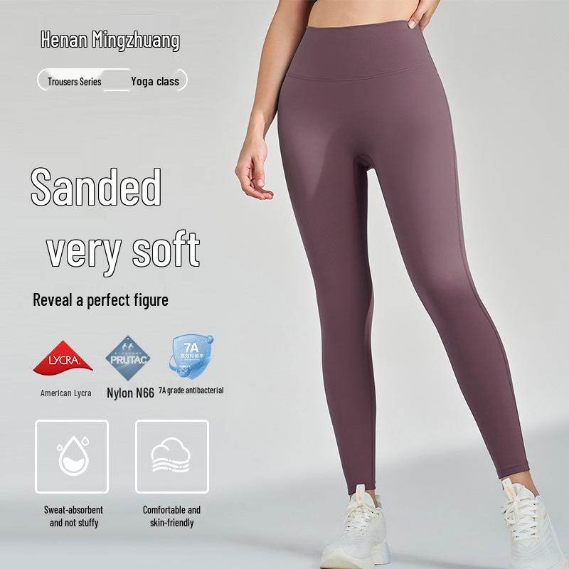 Lycra Brushed Nude Feel Slimming Yoga Pants - Women's Thickened Velvet High-End Pilates Fitness Trousers