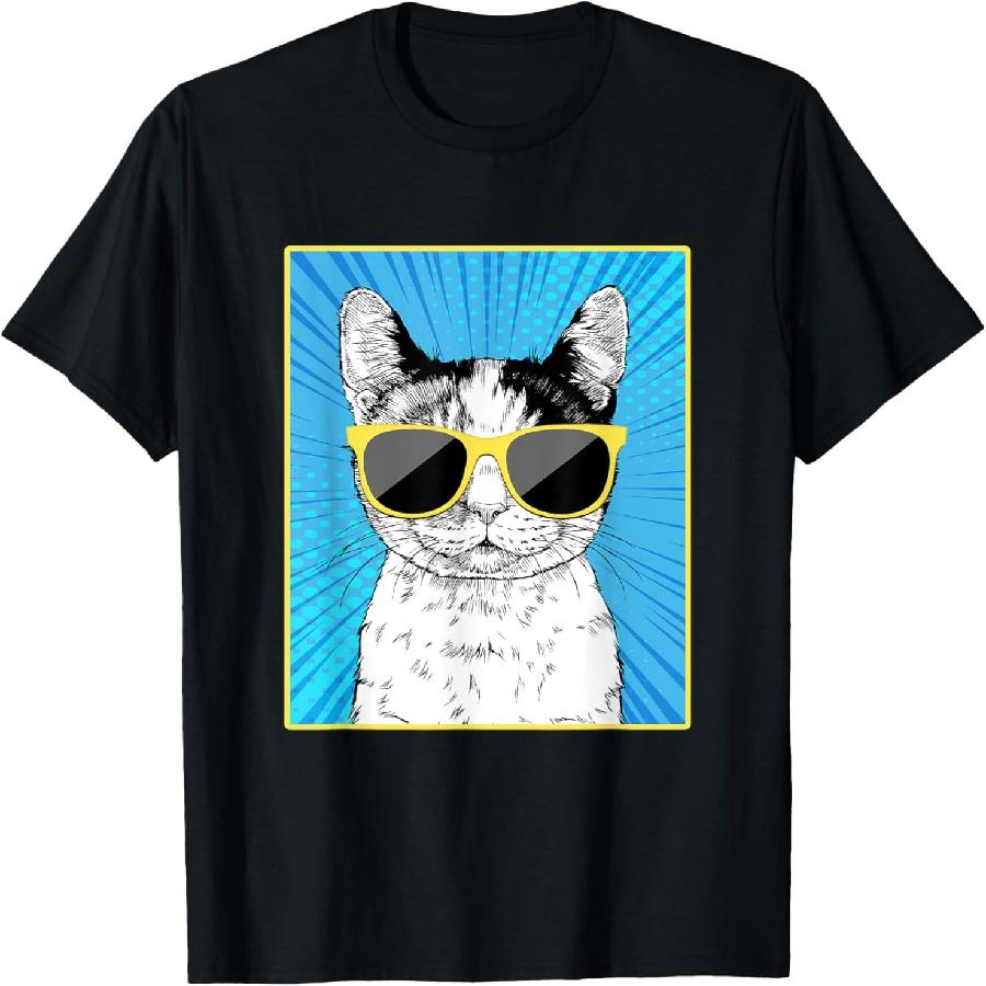 Calico Cat Portrait Pop Art Cat with Sunglasses T-Shirt