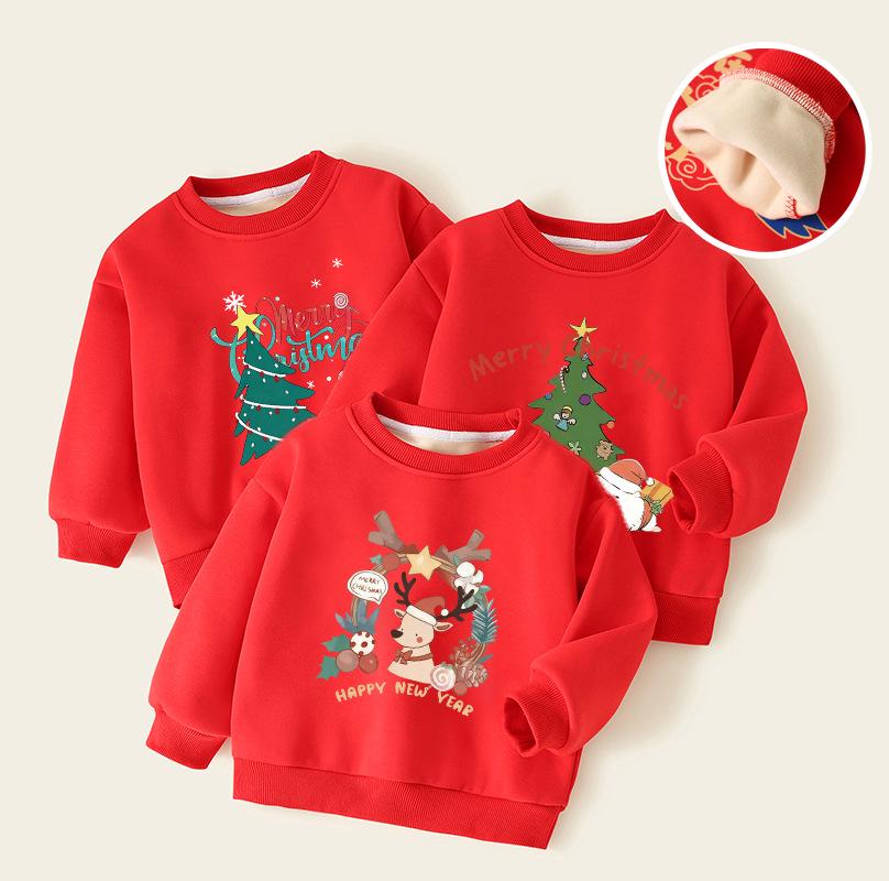 This cozy fleece-lined sweatshirt is designed to keep children warm and comfortable during the winter months. It's crafted from high-quality cotton material, providing a soft and breathable feel. Featuring long sleeves, this top is perfect for boys and girls, making it an ideal choice for New Year and Christmas celebrations. The thickened fabric ensures added warmth, making it a must-have addition to your child's winter wardrobe.