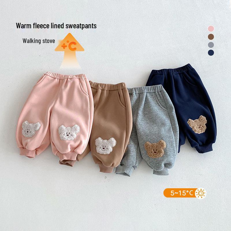 Discover the perfect blend of style and comfort with these trendy casual pants for boys. Crafted from soft and breathable cotton, these training pants are designed to keep your child warm and cozy in the winter months. Featuring a playful color-blocked design and an adorable little bear patch, these pants add a fun and fashionable touch to any outfit. The thickened material ensures durability and extra warmth, making them an ideal choice for active kids who love to move. Perfect for everyday wear, these pants offer a stylish and practical solution for your child's winter wardrobe.