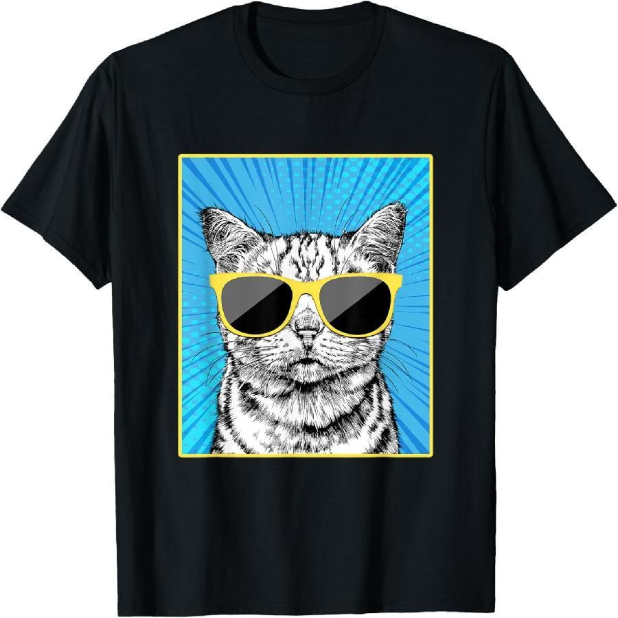 Tabby Cat Portrait Pop Art Cat with Sunglasses T-Shirt for Men Women Kids