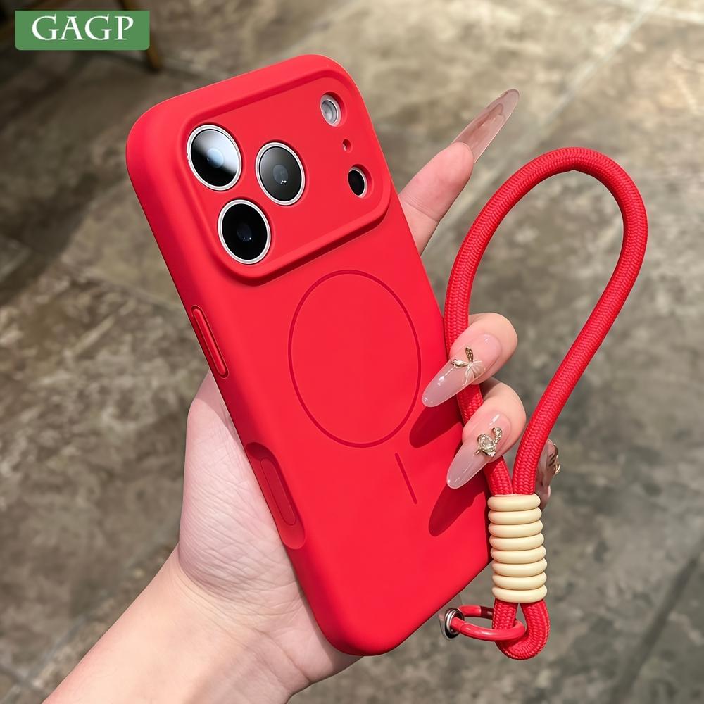 Řemínek na zápěstí z tekutého silikonu pro Magsafe Měkké pouzdro z tekutého silikonu pro iPhone Air 16 Plus 15 14 13 12 17 Pro Max Magnetický kryt