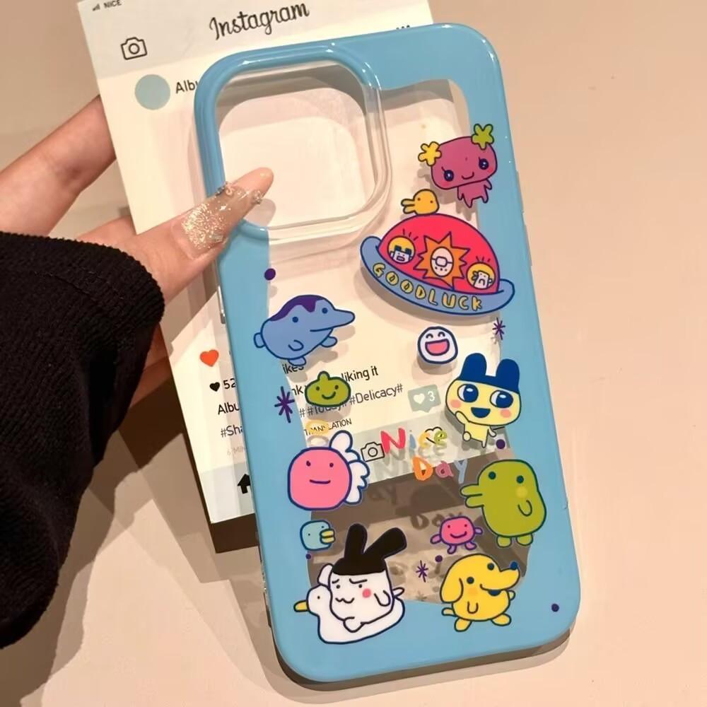 Cartoon Comic T-Tamagotchi Phone Case For iPhone 17 16 15 14 13 12 11 Pro Max 14 15 16 17Air Plus Sweet Cute Y2K Girl Cover