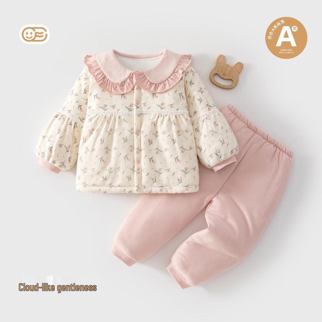 This cozy winter clothing set is designed to keep infants and toddlers warm during the colder months. It features cotton-padded pajamas and homewear, perfect for autumn. The soft, cotton material ensures comfort and gentle care for your child's skin. With long sleeves for added warmth, this set is ideal for both sleep and playtimes at home. Suitable for children in size 90, it offers a snug and comfortable fit.