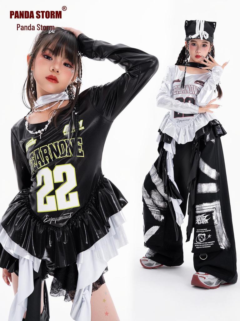 Girls' Trendy Jazz Hip Hop Dance Outfit - Long Sleeve T-shirt & Trousers for Street Dance Performance
