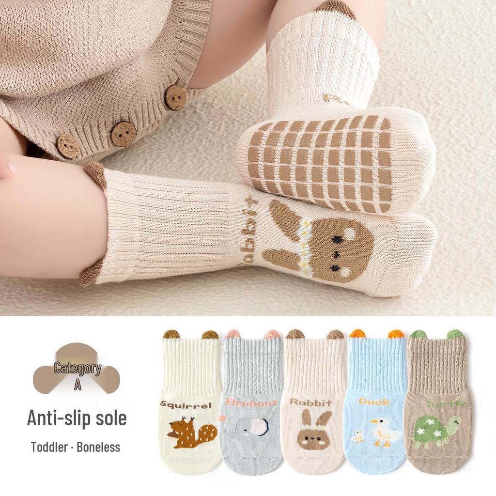 New Cute Cartoon Anti-Slip Baby Floor Socks - Indoor Full Bottom Glue, Spring Arrivals for Toddlers, Cold Protection, Early Learning Walking Socks