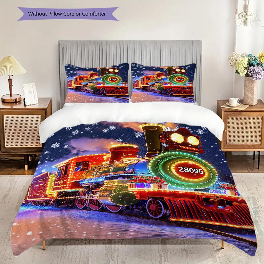 Train Pattern Bedding Quilt Set Quilt Cover Pillowcase Home Decoration Birthday Gift (1 * duvet cover + 2 * pillowcase, without core)
