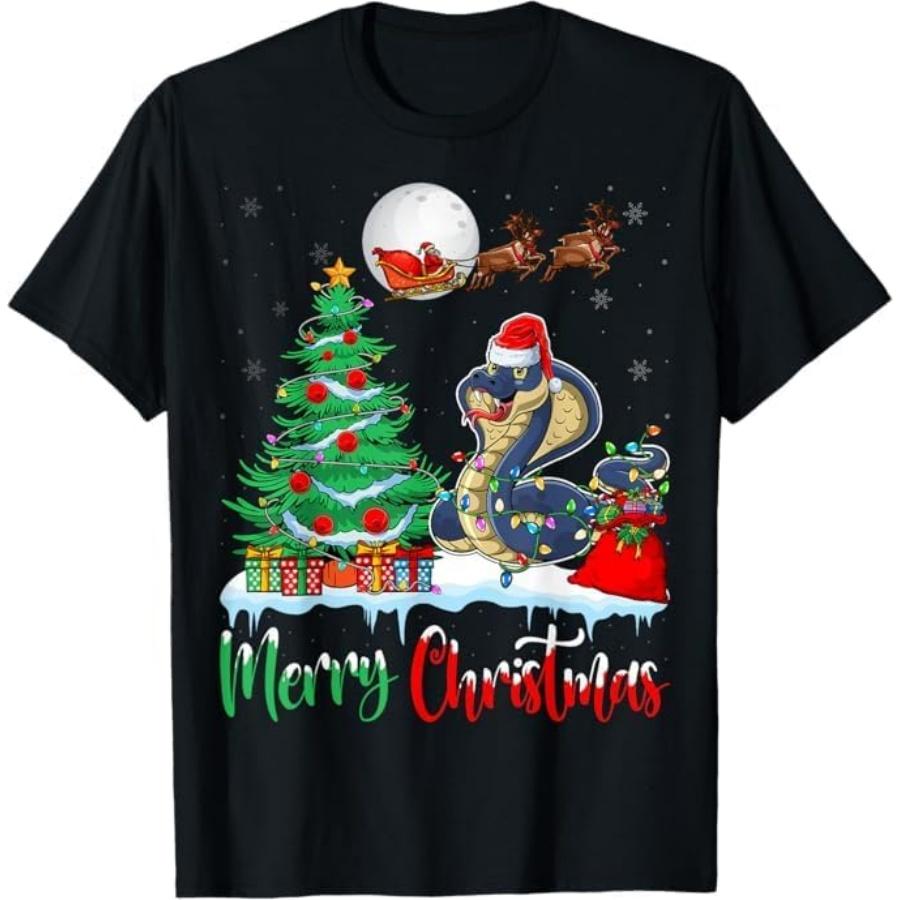 Cobra Snake Santa Hat Xmas Tree Merry Christmas Cobra Snake T-Shirt GIU Mens Womens Tank Top Sweatshirt Hoodie 997 Black