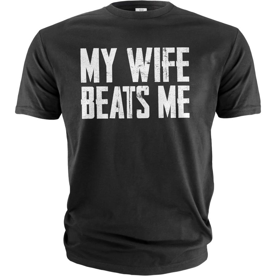Men's Funny Tee Shirt Husband Birthday Sarcastic My Wife Beats me Humor Tshirt Papa dad T-Shirt