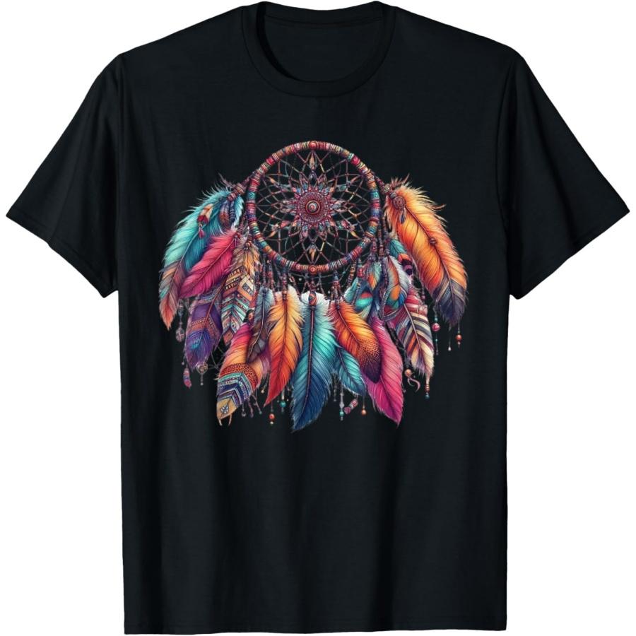 Barevný lapač snů Peříčka Kmenový Původní Američan Indiánské Tričko