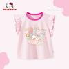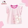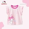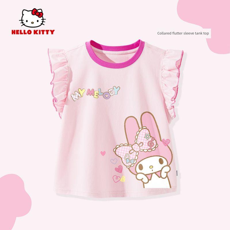 My Melody Girls' Flutter Sleeve T-Shirt Summer 2026 New Pink Children's Round Neck Top Cute Baby Girl Vest
