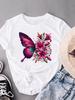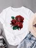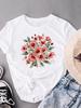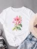 (Asian Size) flower sweet floral Women's Clothing Print Short Sleeve T-shirts Fashion Female Casual Top T O-neck Graphic Tee