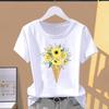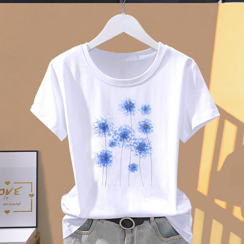 (Asian Size) lovely plant trend Graphic Female Top Women's Clothing T O-neck Tee Fashion Print Casual Short Sleeve T-shirts