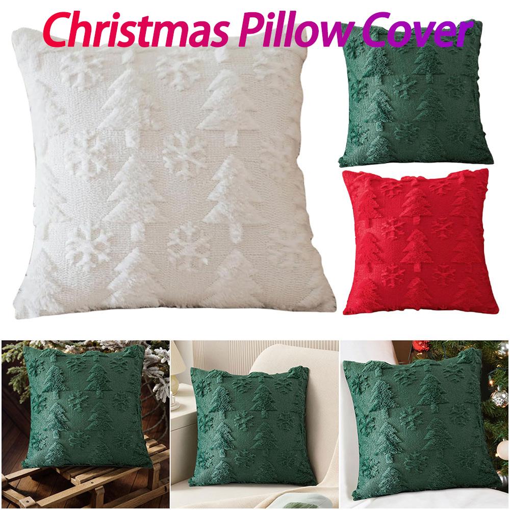 Christmas Pillow Case Christmas Tree Snowflake Pillowcase Soft Plush Cushion Cover Winter Holiday Decor for Sofa Living Room