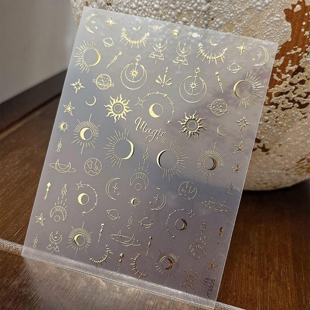 Zlaté a stříbrné hvězdicové měsíční a sluneční samolepky na nehty - Lepicí, Duté, Horký lis pro DIY nehty
