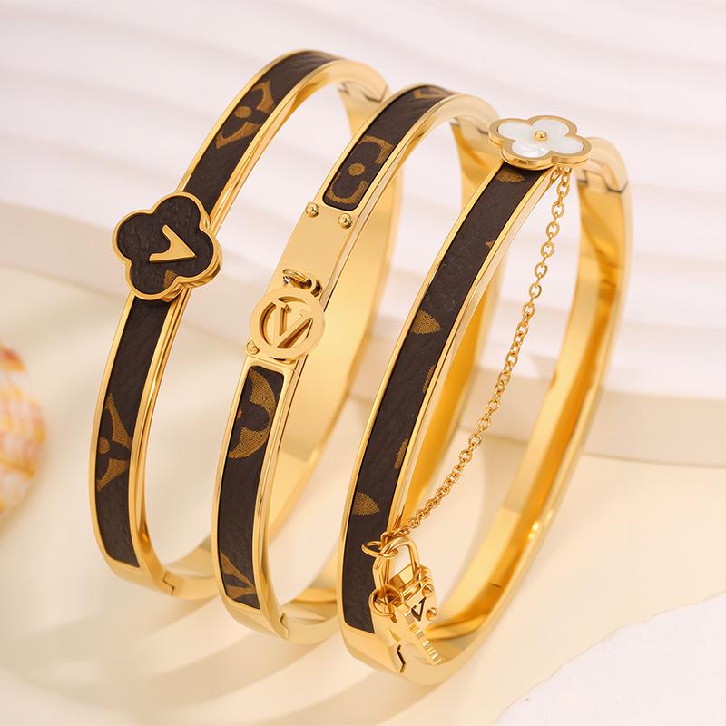 Módní titanová ocelová zámková řetízková kožená náramek se čtyřlístkem pro ženy - Prémiový, Barevně stálý, Evropský a Americký módní design