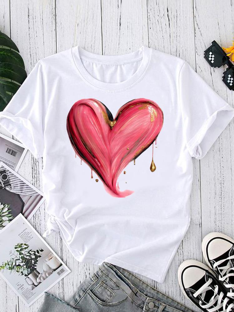 (Asian Size) sweet love trend Women's Clothing T Graphic Female Top O-neck Tee Fashion Print Casual Short Sleeve T-shirts