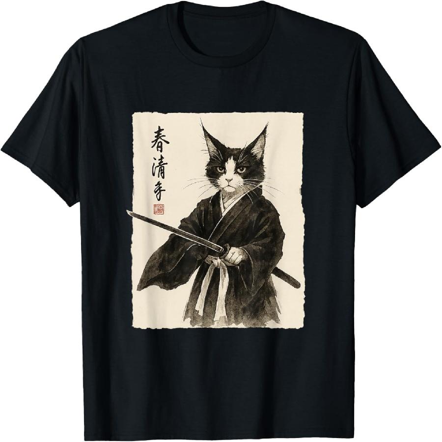 Samurajská kočka Vintage Ukiyo-e Válečné umění Grafické umění kočky Tričko