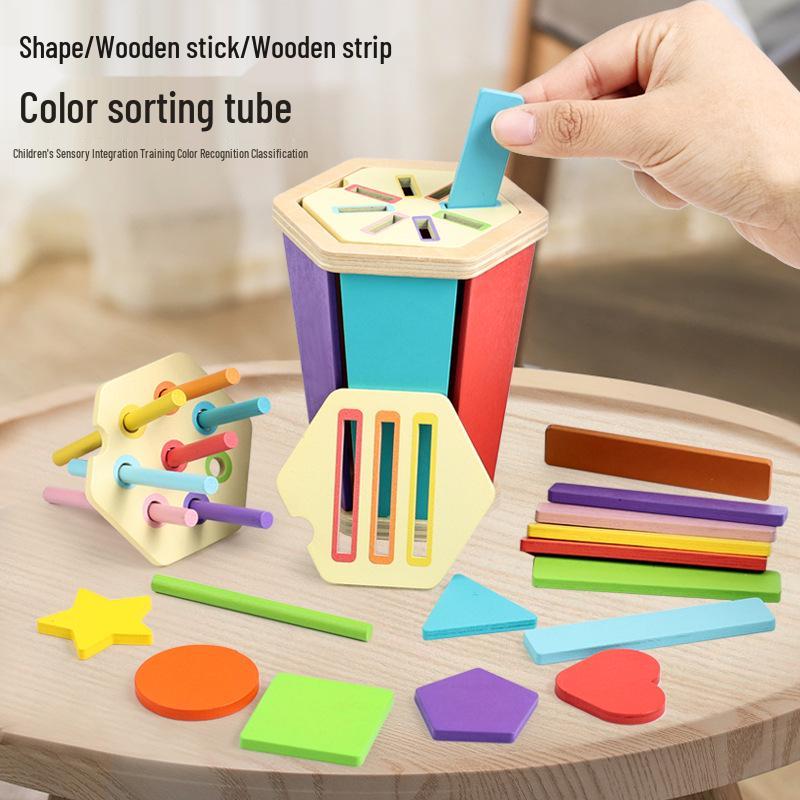 Montessori Wooden Color and Shape Sorting Cup Set for Early Learning and Grip Development