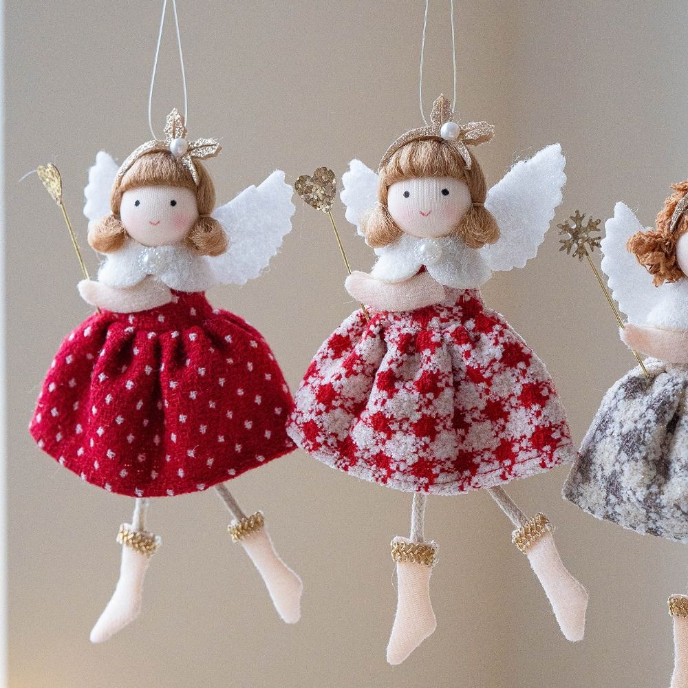 High Quality Cloth Angel Girl Pendant Red White Grey DIY Decor Christmas Doll Pendant Hanging Ornaments New Year Party