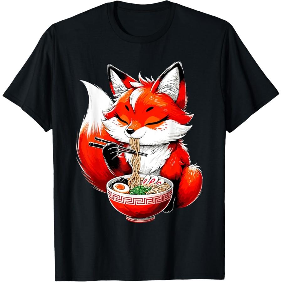 Fox Eating Ramen Noodle Animal Fox T-Shirt