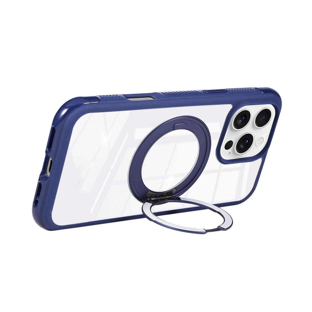 For iPhone 16 Pro Magnetic Case Stress Relief Kickstand TPU + PC Transparent Protective Phone Cover