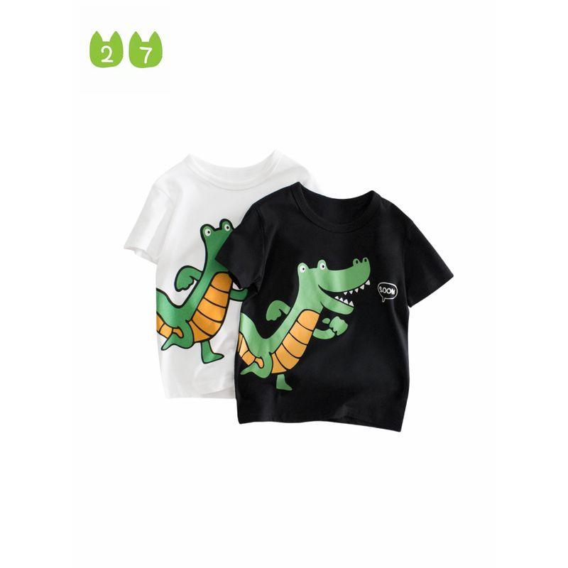 27kids Kids Summer Short Sleeve T-shirt Top Children's Clothing Boys Dinosaur Clothes Baby Boys Cotton Base Shirt