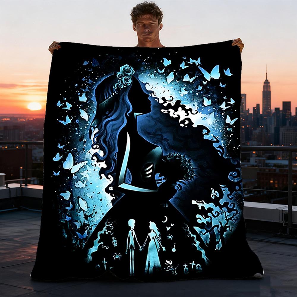 1pc Corpse Bride Outdoor Personalized Flannel Blanket, Soft, Lightweight Personalized Flannel Blanket, Digital Printing,