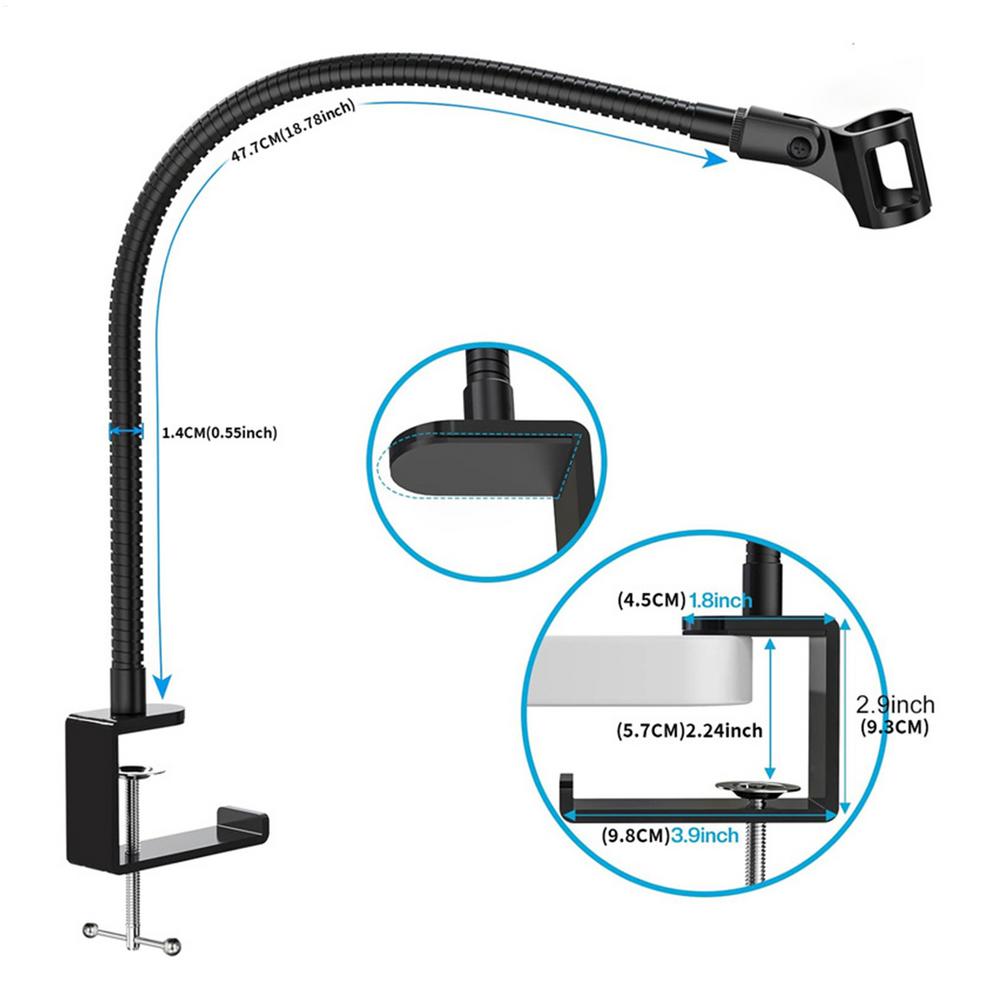 Microphone Desk Mount with Clip Thick Tube Non-Slip Pad Microphone Boom Arm Desk Holder with Clip for Podcast Singing Live