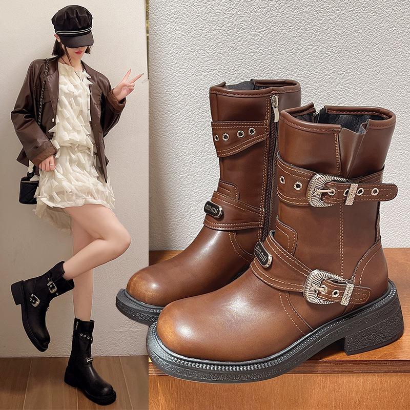 Thick-soled brown Maillard boots women's new summer Martin boots western cowboy knight short boots