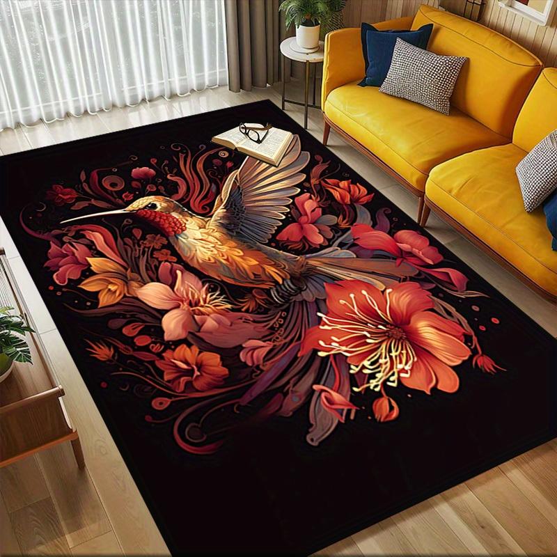 1pc Hummingbird Flowers Themed Rug for Home Decor, Non-slip Office Carpet, Chair mat, Outdoor Mat, Christmas and Halloween gifts-0731016