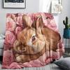 Rabbit and Flowers pattern Flannel Blanket, High quality Comfortable for All Seasons, Home Decor, Warmth and Comfort, Perfect for Gifts.