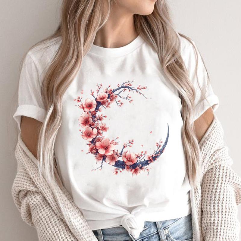 (Asian Size) O-neck Short Sleeve T-shirts Print Casual Top T trend flower style Graphic Tee Fashion Female Women's Clothing