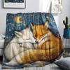 Fox and Moon pattern Flannel Blanket, High quality Comfortable for All Seasons, Home Decor, Warmth and Comfort, Perfect for Gifts.
