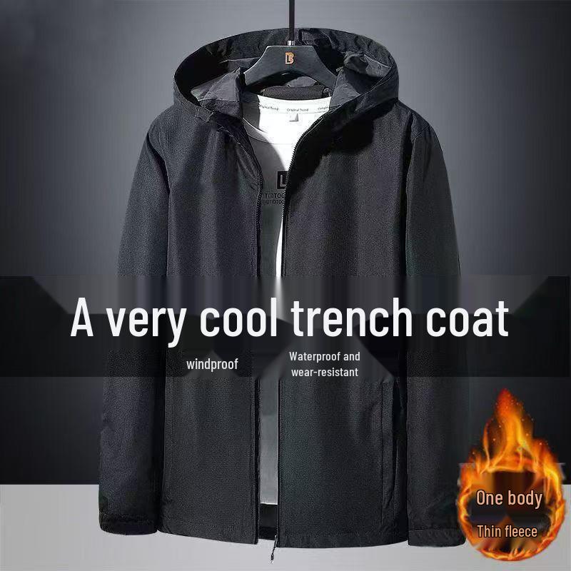 Introducing a versatile men's jacket designed for the adventurous spirit. Crafted for the spring and autumn seasons, this medium-thickness windbreaker combines waterproof and windproof features, ensuring protection against the elements. The solid pattern and polyester material provide a sleek and modern appearance, while the chemical fiber blended fur offers added comfort. A stand neckline and long sleeves enhance the jacket's protective qualities, making it perfect for outdoor activities. Its dirt and wear-resistant properties ensure durability, promising a dependable companion for your outdoor pursuits.