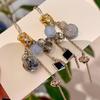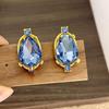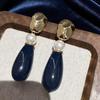 Vintage Blue Glass Bow Earrings - Retro Design Ornament
