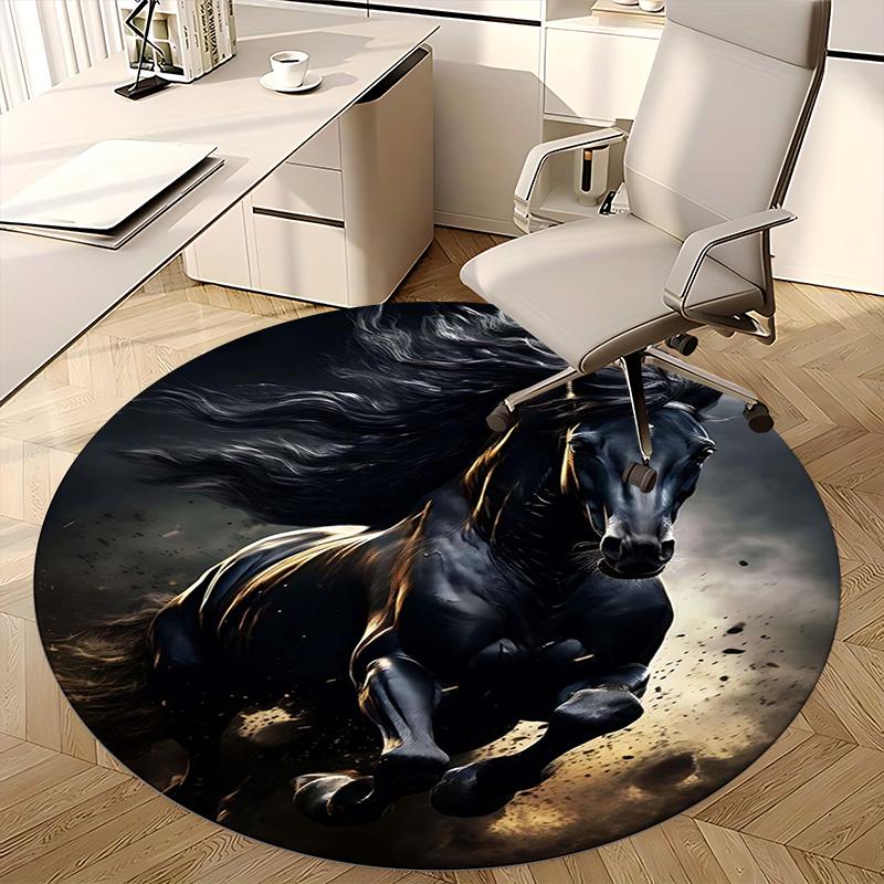 Black Horse,Fantasy Artwork Chair mat Round Rug Office carpet, Machine Washable, Non slip, Suitable for Living Rooms, Bedrooms